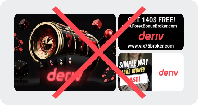 Clearly define the services you are promoting. Make sure it’s evident that you are endorsing a trading platform and not a casino or get-rich-quick scheme. For example, you cannot represent Deriv or its products and services as:
